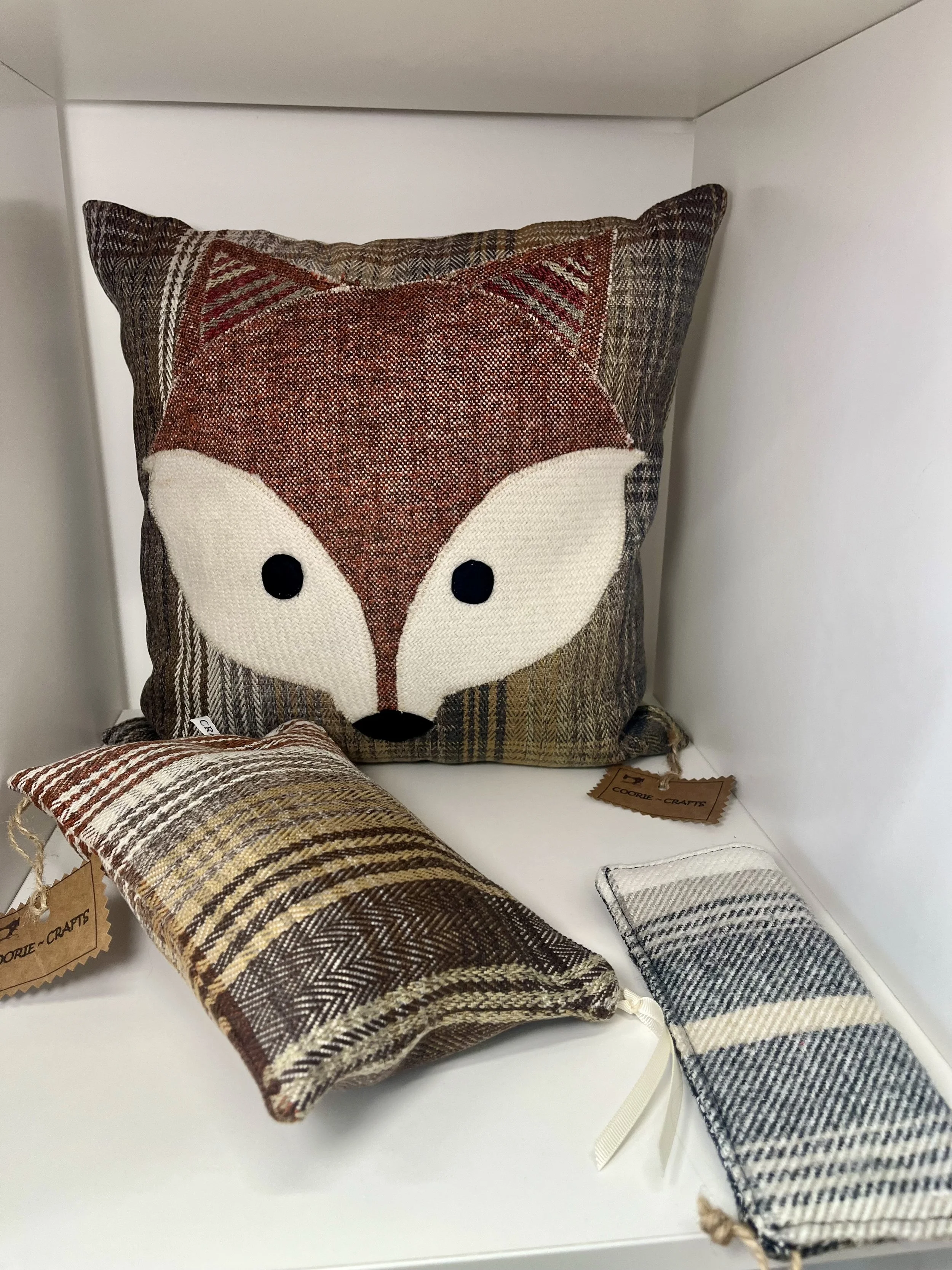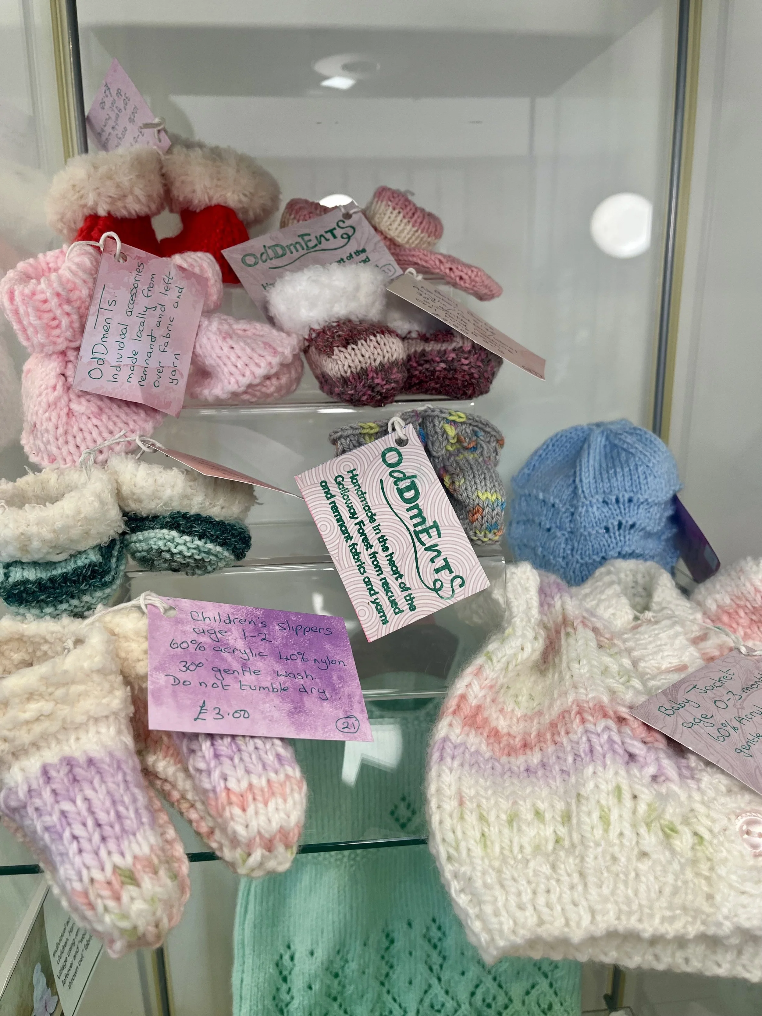 Individual accessories for adults and children. Hand made in Glentrool Village using remnant, end of range, leftover and “would otherwise be thrown out” fabrics and yarn.