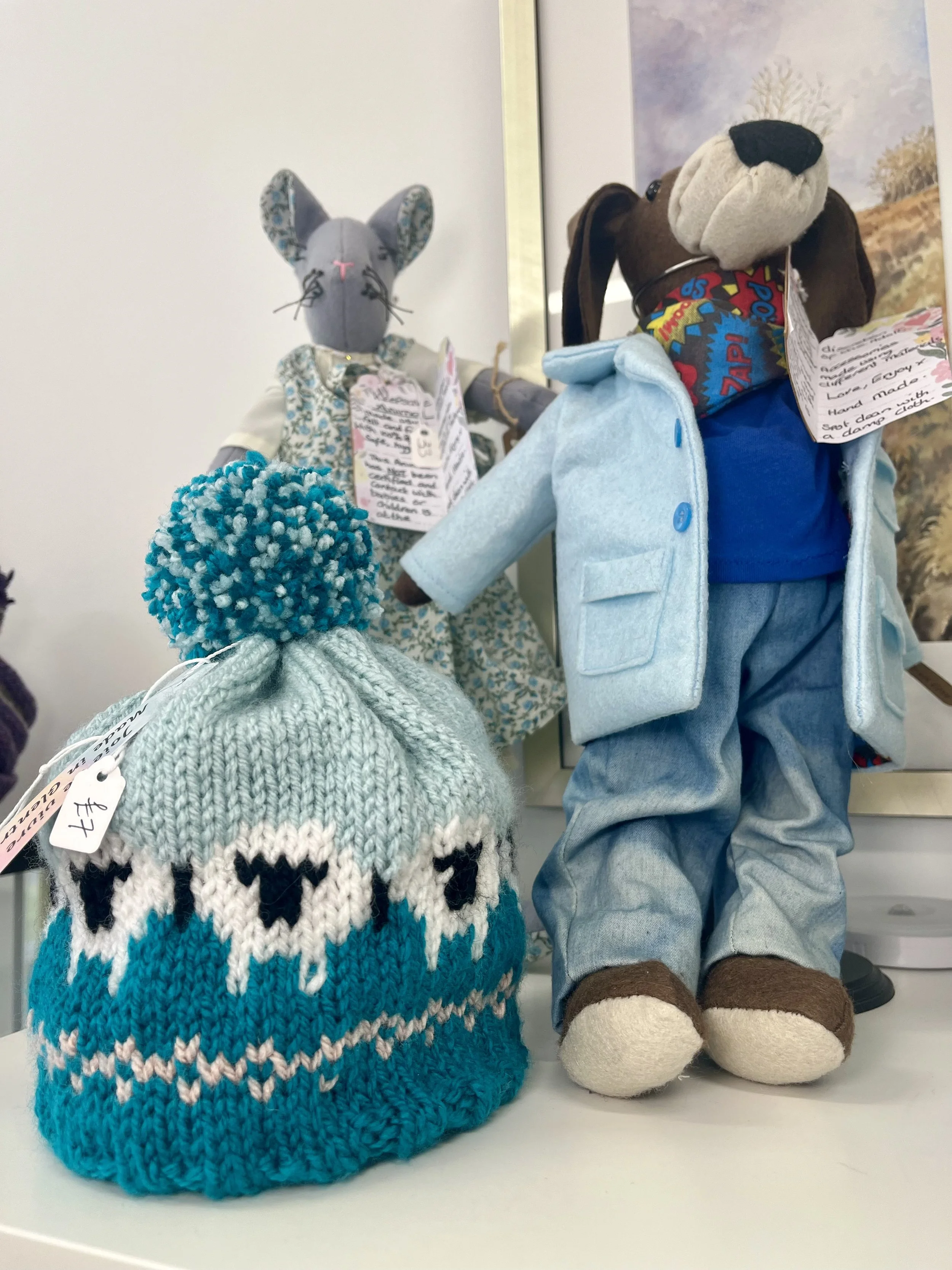 Handmade hats and beautifully crafted animal toys.
